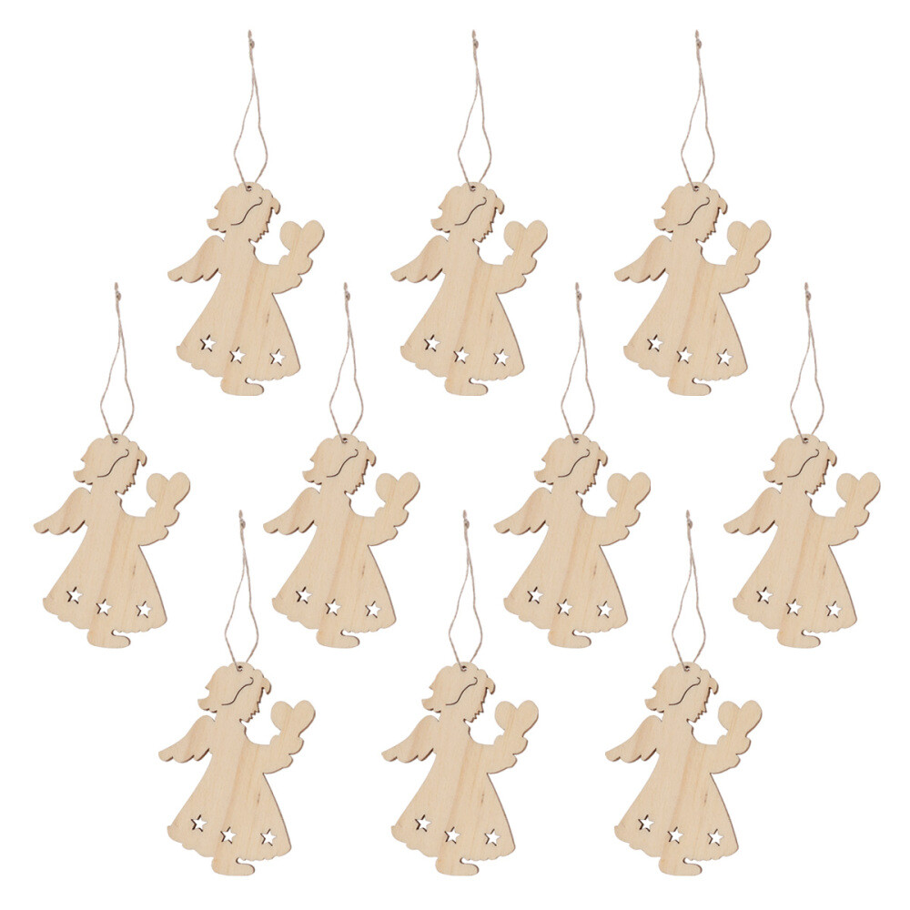 10 Pcs Wooden Pendant Holiday Hanging Decorations Craft Ornaments