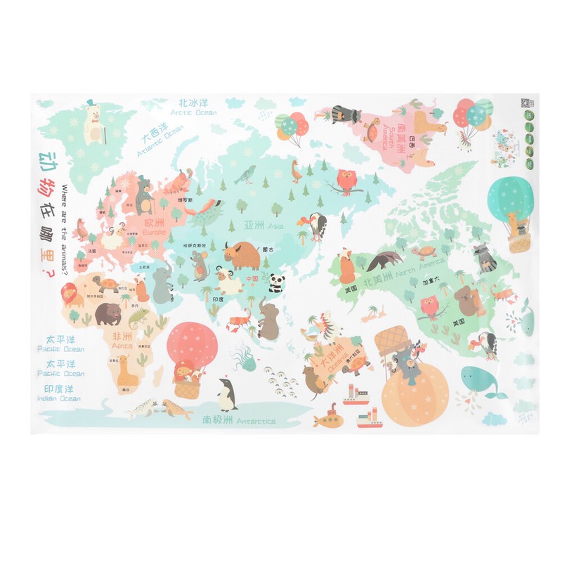 1pc world map wallpaper Animal World Map Sticker Decorative Sticker Decorative